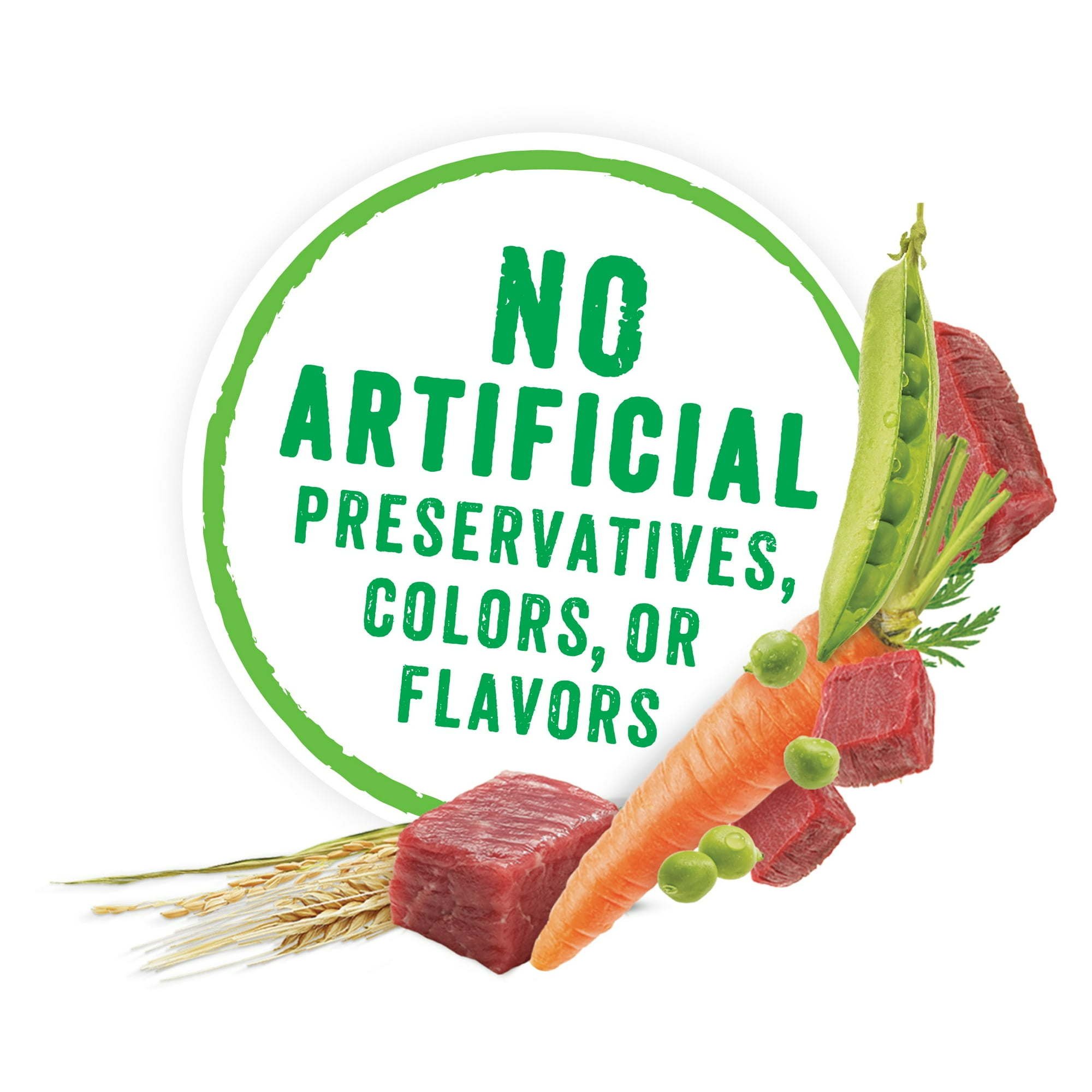 Purina Beneful Chicken & Beef Stew Wet Dog Food, Savory chunks with real beef in our recipe with no artificial colors, flavors or preservatives give your canine companion something to sink his teeth into while helping supply high quality protein to support strong muscles. Crafted with carrots, barley, wild rice and spinach you can see, along with 23 essential vitamins and minerals, this premium dog food with gravy provides a 100 percent complete and balanced meal for your adult dog.